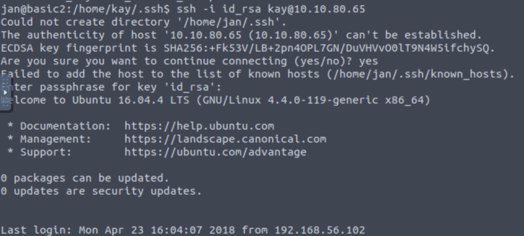 And when we ssh in the kay user using the above password we can now access every file in the directory.