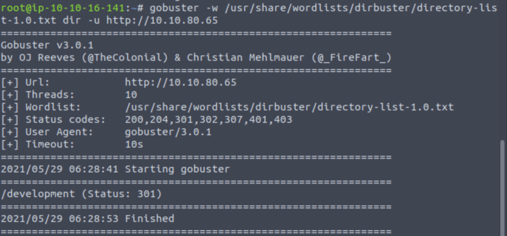 “Gobuster” a directory busting tool which helps in finding out hidden directories based upon the scanning method of brute-forcing using a wordlist.