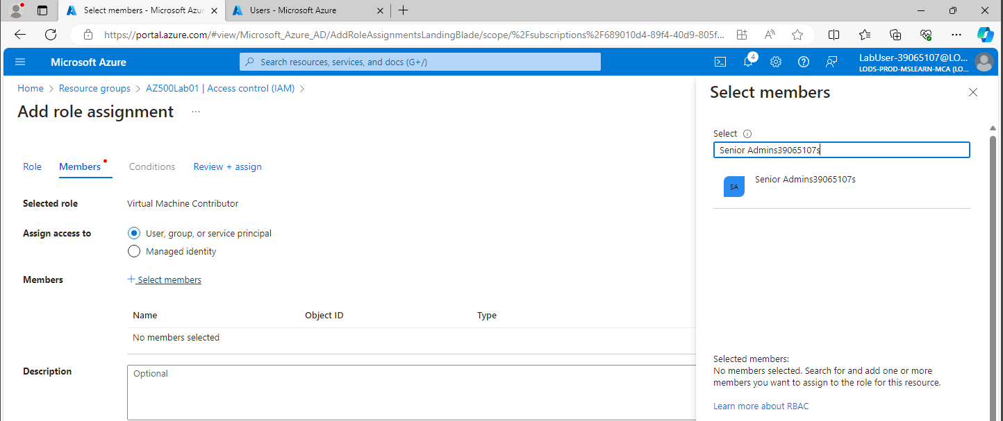 - Assign the Virtual Machine Contributor role to the Senior Admins group.